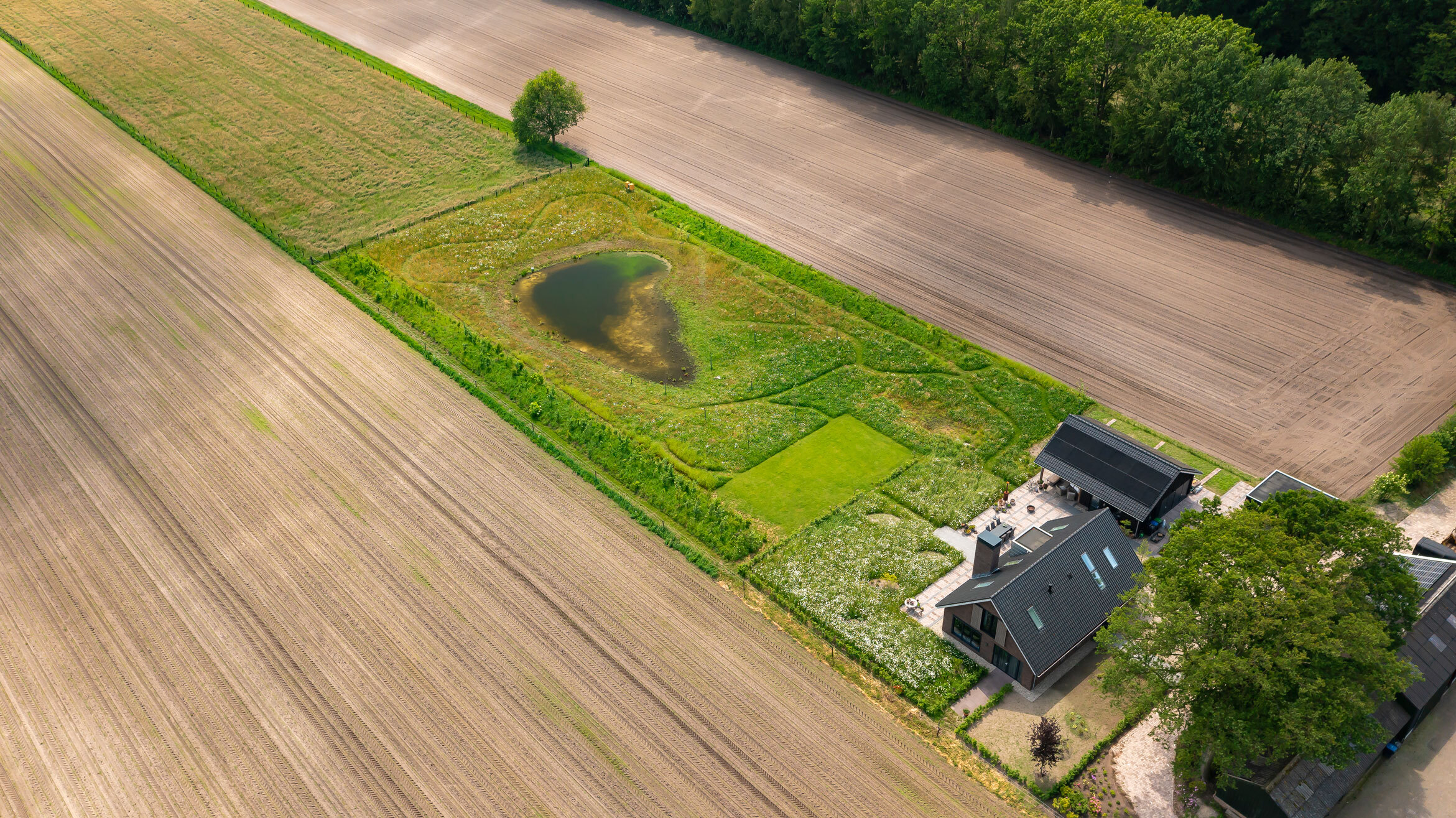 Dit project bestaat uit 2 delen: de tuin en het landschappelijke deel inclusief vijver. De zichtlijnen vanuit de woning zijn zo gemaakt dat de bewoners op de vijver kunnen uitkijken. Dat is nog eens een prachtig uitzicht!